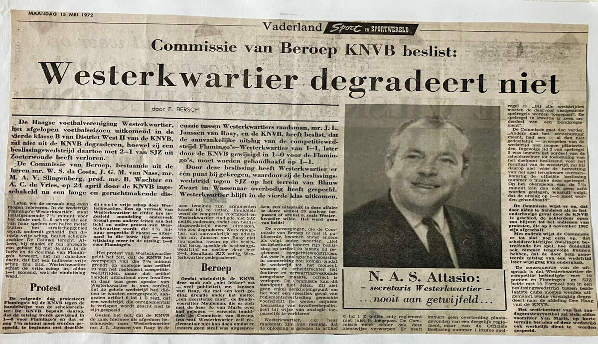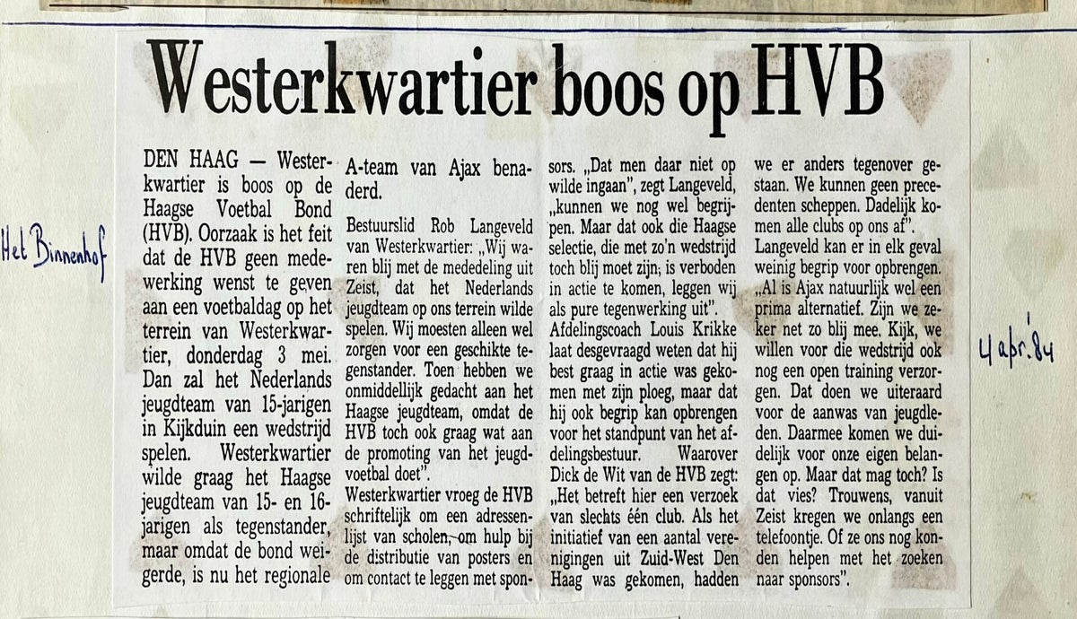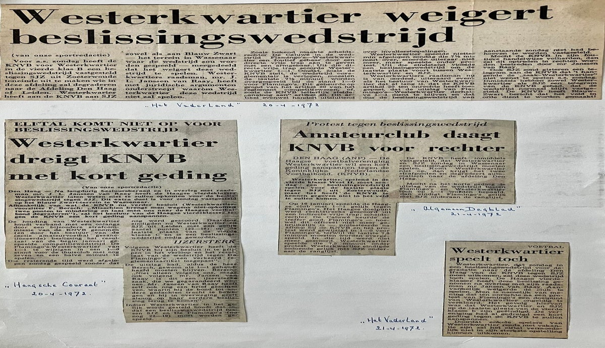 Update 18 april 2025: Het Haags Gemeentearchief heeft alle Westerkwartier Archiefboeken (zie ook hieronder) gedigitaliseerd. Daarmee blijft de WK-geschiedenis 'voor de eeuwigheid' bewaard. Wie de boeken ter plekke (in de studiezaal) wil bekijken of een scan-verzoek wil indienen, kan dit aanvragen via de website van het Gemeente-archief (Collectie Sport, 77 t/m 81).
