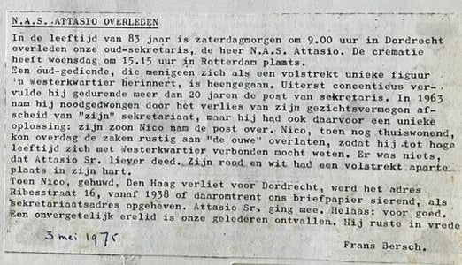 Nico bewaarde het archief, na het overlijden van z'n broer Ton (op 19 oktober 2003; Ton was geridderd in de orde van Oranje Nassau). Ton was de officiële Westerkwartier-archivaris en hield nauwgezet knipselboeken bij van WK.
