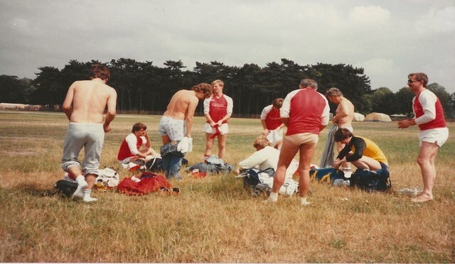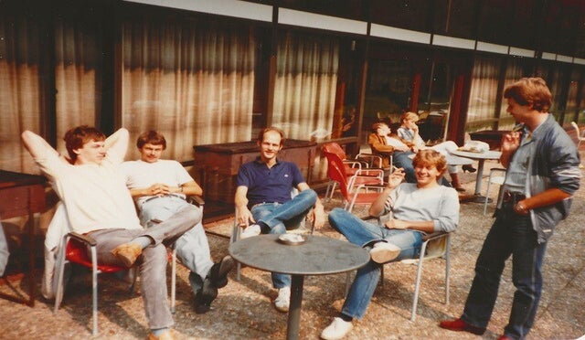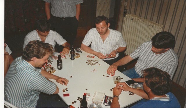 - op de kaartfoto 'Toep over' staat (waarschijnlijk) René van Lingen. Als 2e van rechts, toch? Maar wie zit er tussen Frans en Paul?