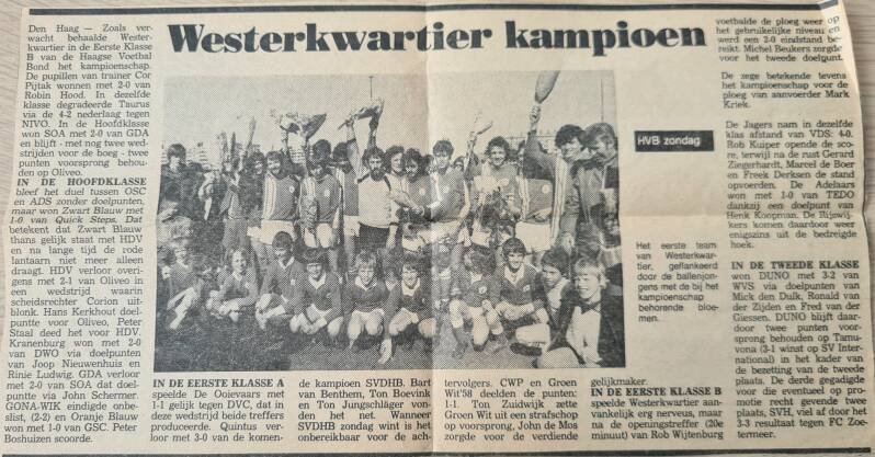 Daaronder een artikel uit Het Vaderland over het kampioenschap in 1978. Op de foto zijn o.a. herkenbaar: Chiel Beukers, Gerben Bolling, Ben Helmich, Peter Honing, Dick Koper, Frans Schoonen, Rob Wijtenburg, Jan Moes en Cor Pijtak.