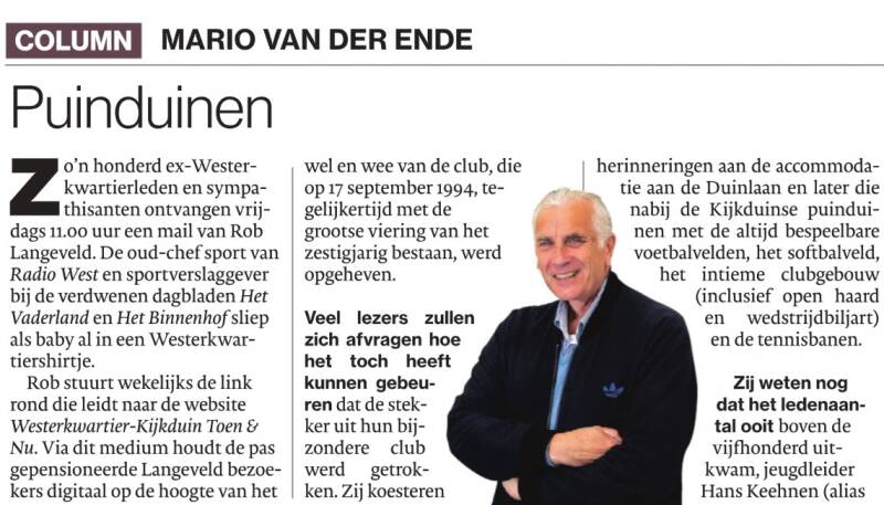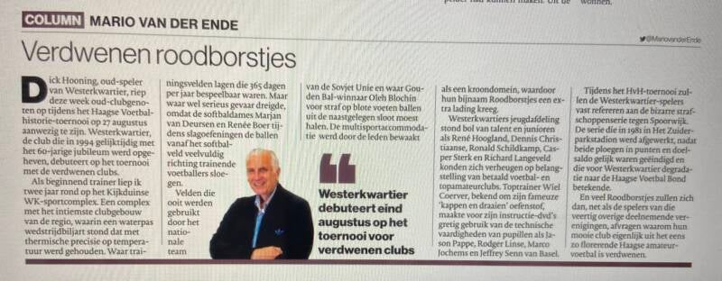 In 2022 schreef oud-Westerkwartier-trainer/internationaal scheidsrechter Mario van der Ende deze column in over de verdwenen 'Roodborstjes' in AD/Haagsche Courant.
