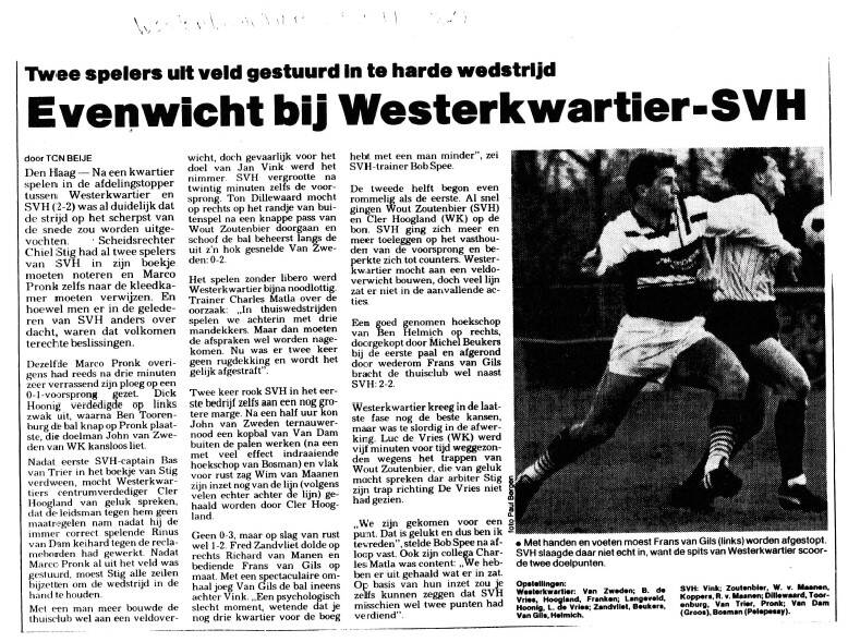 Op de bovenste foto's bij het artikel vlnr in beeld: Ton Wegerif, Chiel Beukers, Marco van Leeuwen en Hugo Rongen. Allevier Westerkwartierders, tegenstander Quick heeft het nakijken. Rechts Westerkwartier-keepertje Tonnie de Jong en onderaan zijn onder meer Cor van der Made en Marco van Leeuwen herkenbaar.