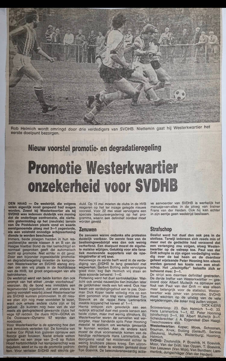 In een artikel in AD/Haagsche Courant (19 oktober 2025) schrijft Martin van Zaanen over de opmerkelijke strafschopserie tussen Westerkwartier en Spoorwijk, om te beslissen over degradatie of 'lijfsbehoud'. Dat was in 1981. Aanleiding voor een Prijsvraag op deze site. Hint: in één van de vier Archiefboeken van WK (gedigitaliseerd op deze site) komt de historische penaltyreeks ook aan bod...