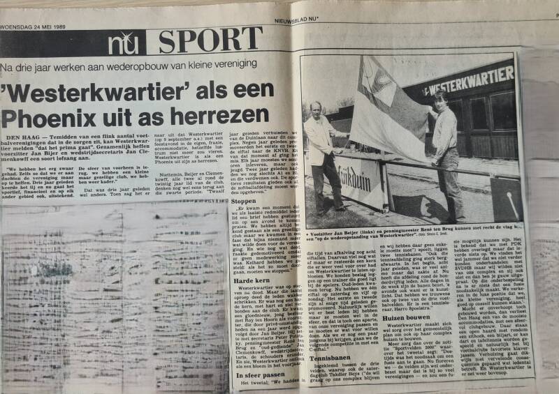 Cor van der Made vond in zijn archief twee, nogal constrasterende, krantenartikelen over Westerkwartier. Eentje uit het weekblad NU, 1989, waarin Jan Beijer en René ten Brug vertellen over de herrijzing van Westerkwartier aan de Machiel Vrijenhoeklaan. En eentje uit de Haagsche Courant, krap 5 jaar later - 1994, waarin Ruud Beukers vertelt dat 'het roodborstje niet meer tjilpt'.