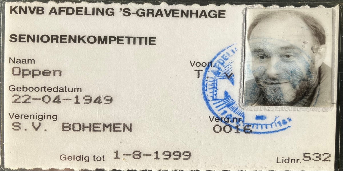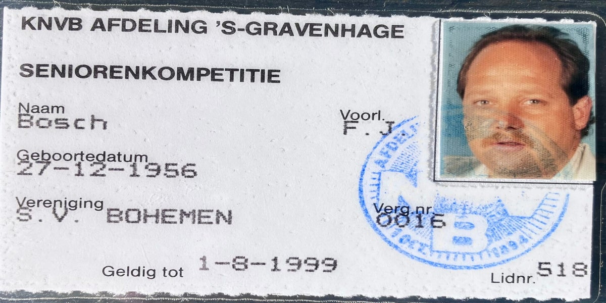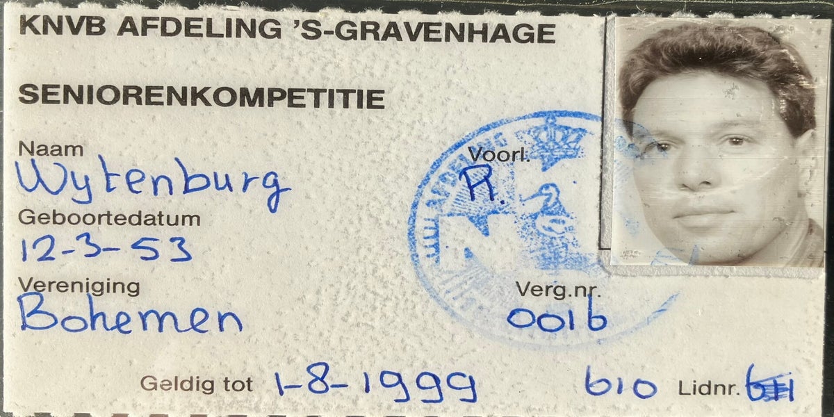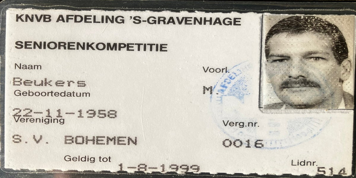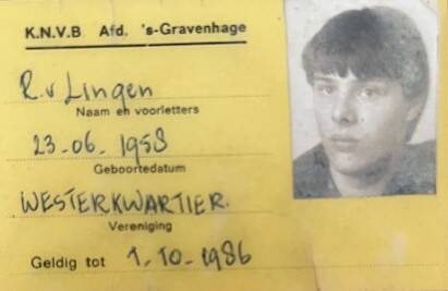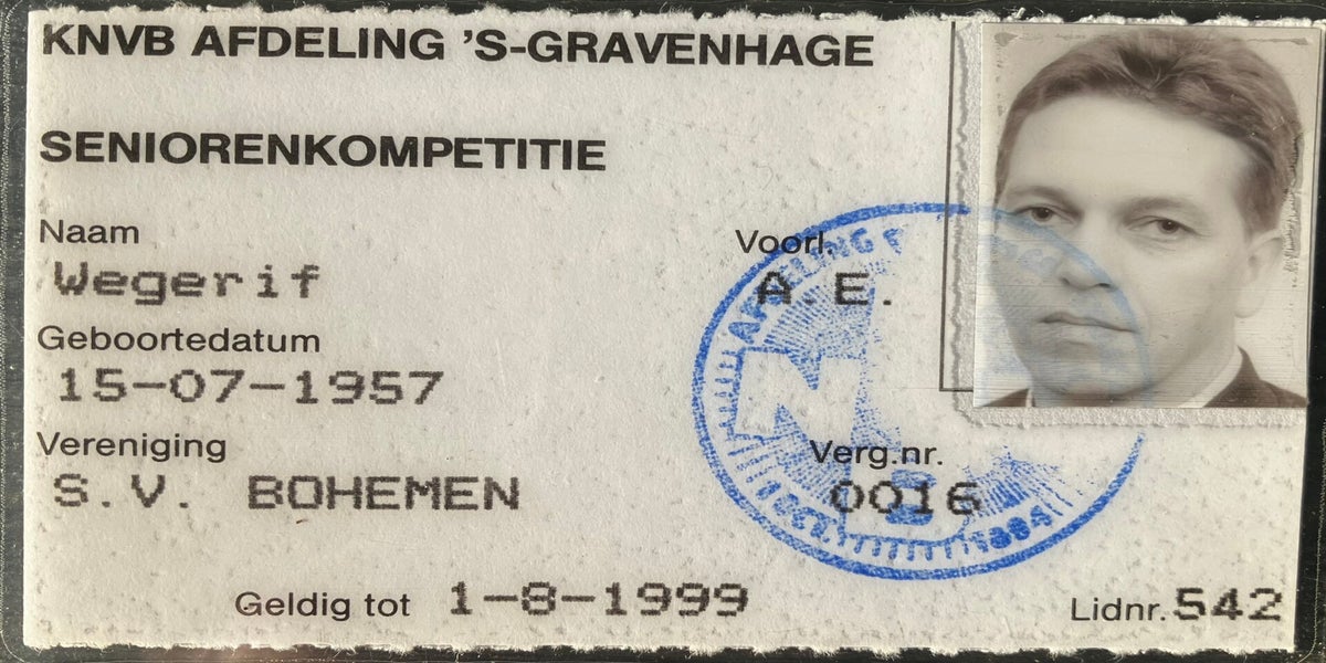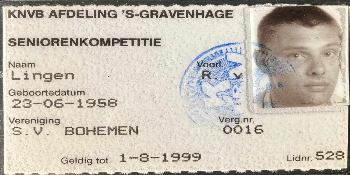En zijn spelerskaartje uit 1986 (foto's onder). Ondertekend door de toenmalige 'verenigingssecretaris'. Met een -vooralsnog- onduidelijke handtekening. Wie herkent hierin zijn krabbel? Mail het svp even naar info@westerkwartier-kijkduin.nl