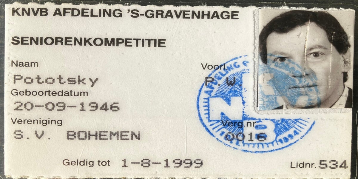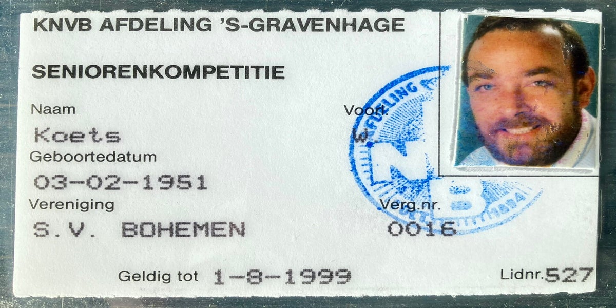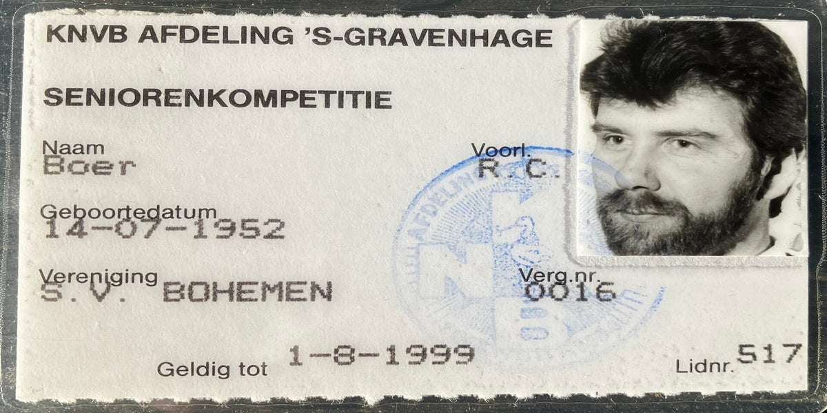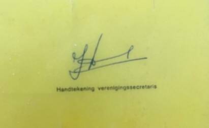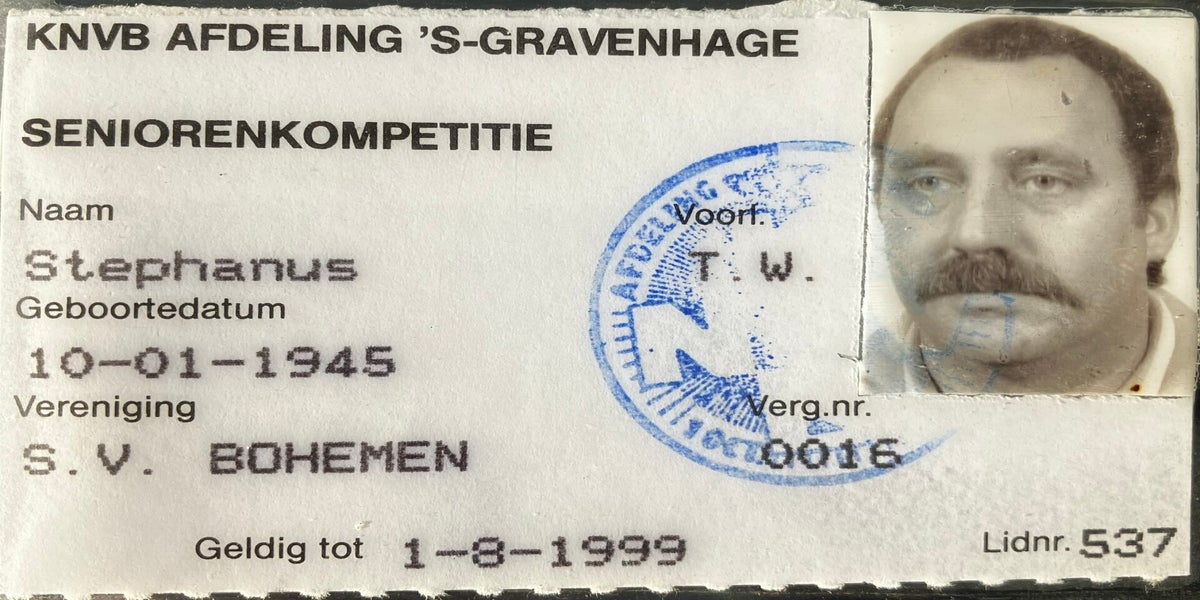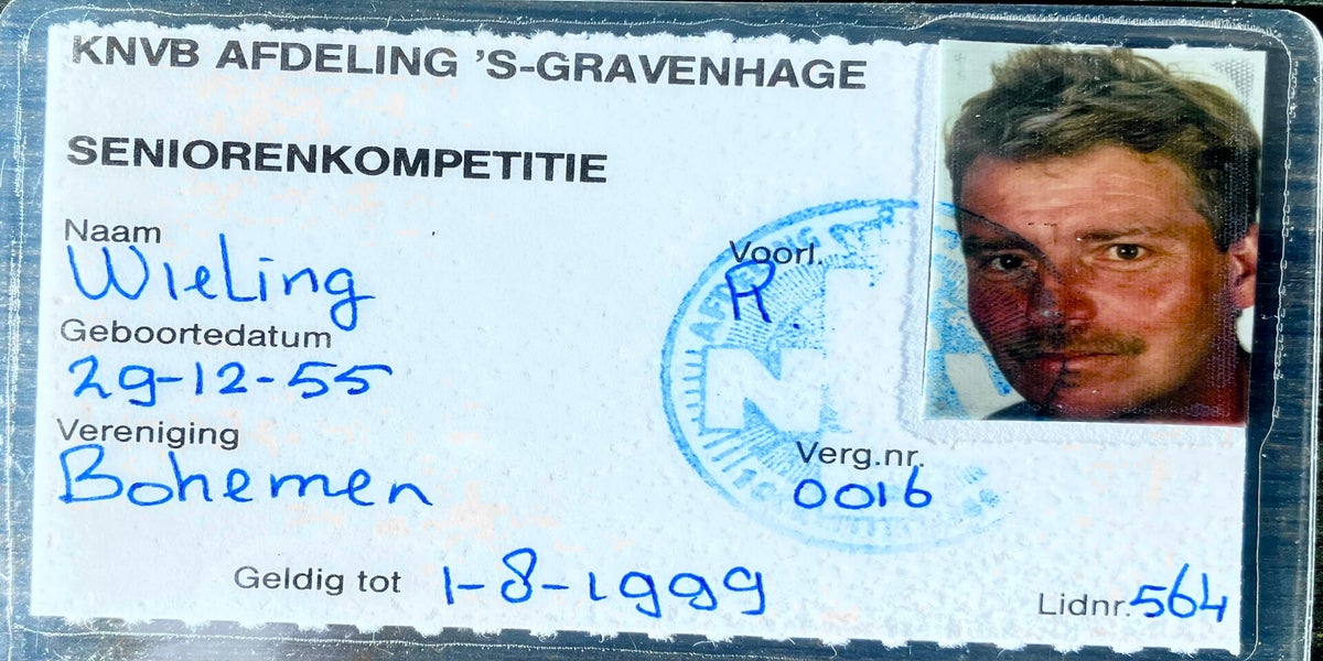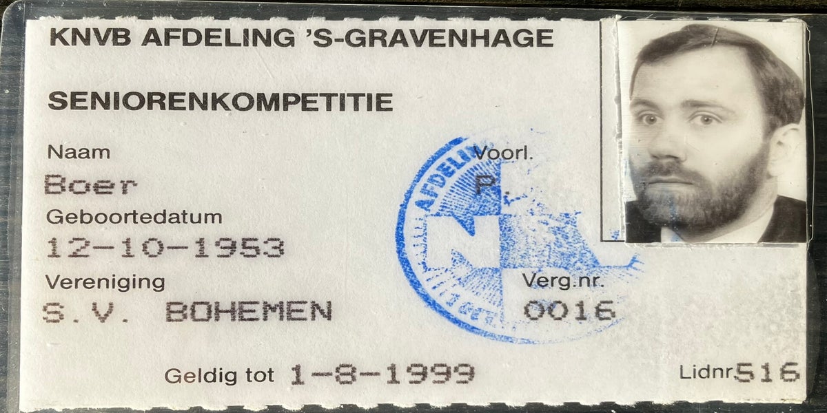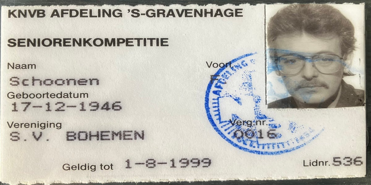 En zijn spelerskaartje uit 1986 (foto's onder). Ondertekend door de toenmalige 'verenigingssecretaris'. Met een -vooralsnog- onduidelijke handtekening. Wie herkent hierin zijn krabbel? Mail het svp even naar info@westerkwartier-kijkduin.nl