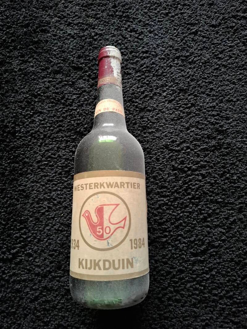 Uit de (wijn-)kelder van Lucia van Deursen: WK-jubileumwijn. In 1984 vierde WK het 50-jarig bestaan. Het organisatie-comité met o.a. Lucia, Carla van Oosterhout, Jan Moes en Rob Langeveld bracht tal van Westerkwartierders en voormalig Westerkwartierders bijeen voor een receptie en een grote reünie. Locatie: De Bataaf (bij Madurodam). Ter gelegenheid van het halve eeuw-feest werd onder meer een grote Abraham-taart gemaakt én dus deze WK-wijn. Volgens kenners was 1984 een zéér goed wijnjaar, maar of dit stoffige relikwie anno 2026 nog smakelijk is, is maar zeer de vraag. Wel mooi dat Lucia al die (42) jaren de kurk erop heeft gelaten!